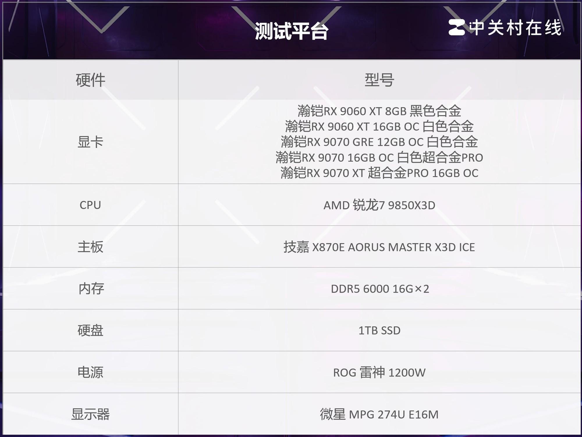 首先介紹一下測試平臺,本次測試爲縱評,我們選擇了瀚鎧旗下的5款產品,覆蓋旗艦到入門。處理器選擇了AMD剛剛發佈的R7 9850X3D。