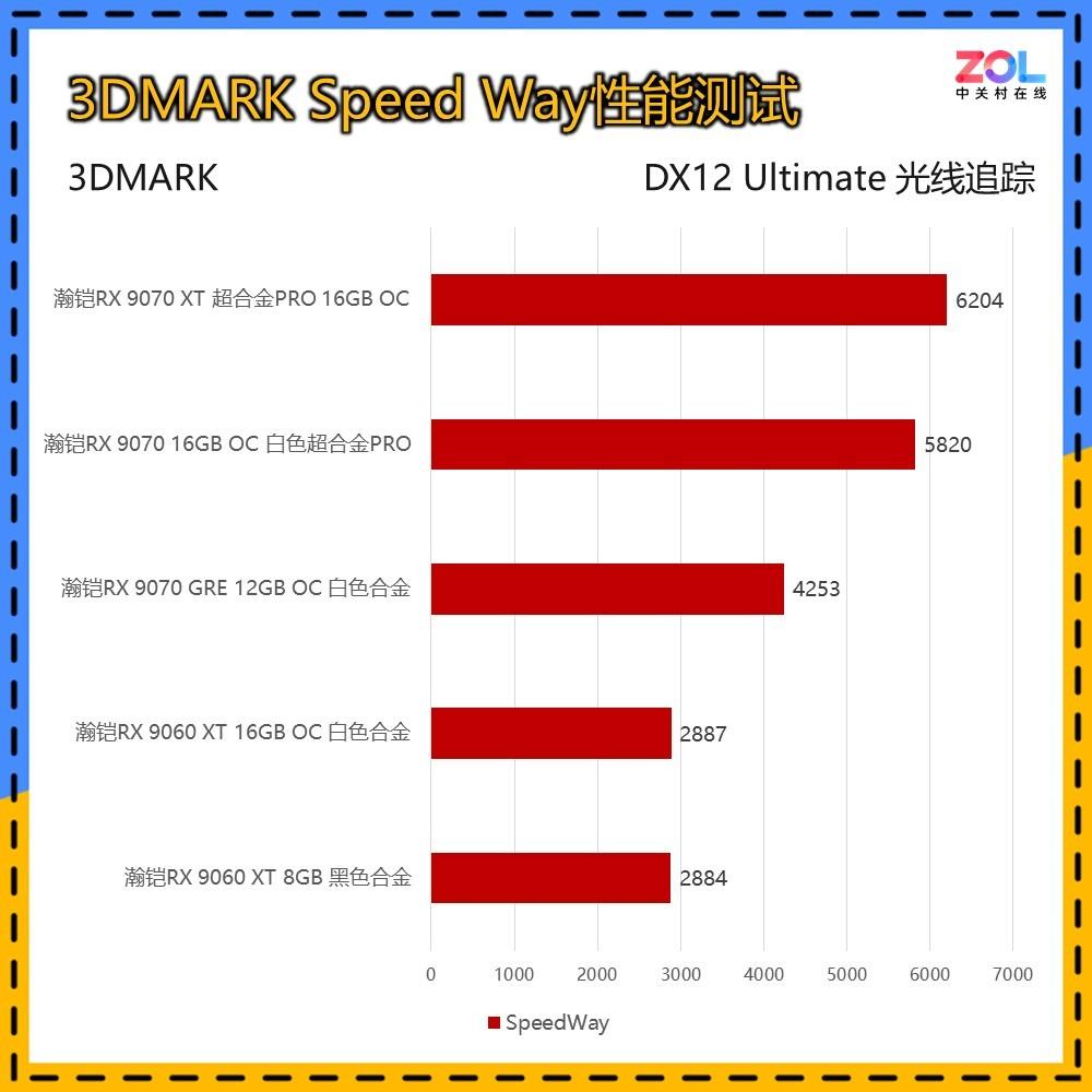 Speed Way是2022年發佈的DirectX 12 Ultimate基準測試,結合了實時光線追蹤和傳統渲染技術來測量顯卡性能。場景含有光線追蹤反射、實時全局光照、網格着色器、體積照明、粒子和後處理效果。所以Speed Way的測試基本可以看做次世代3A遊戲基準。