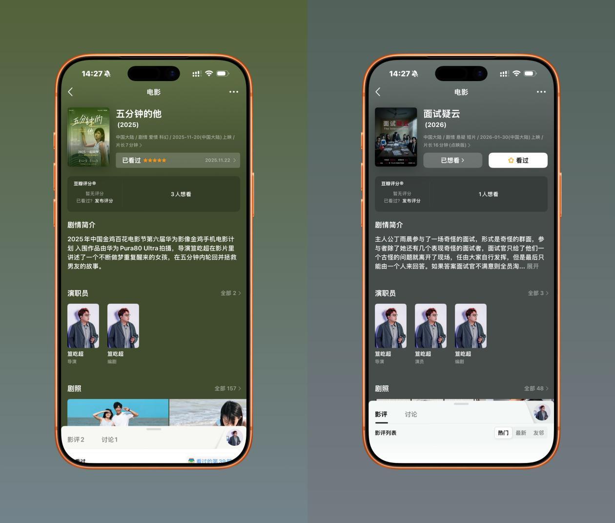 於是,他從五萬字小說中提取核心章節,改寫成關於輪迴與救贖的短片劇本《五分鐘的他》。團隊全員出動,全程用手機拍攝,他一人把控編劇、導演、後期全流程,將數碼測評團隊變成小型電影製片廠。