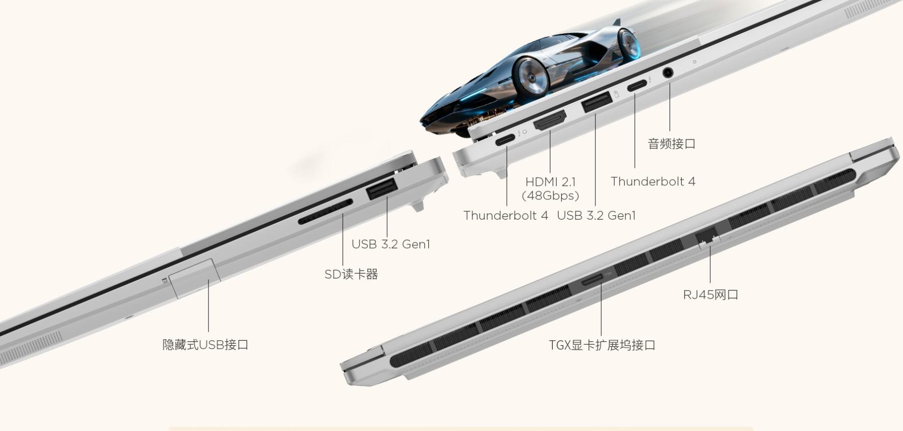 對於經常使用筆記本連接各類外接設備的打工人來說,ThinkBook 16+ 2026提供了大滿貫接口,RJ45網口、標準SD讀卡器、HDMI 2.1視頻端口等一應俱全。而且它還提供了TGX顯卡擴展塢接口,通過外接顯卡可以進一步提升整體性能與泛用性。