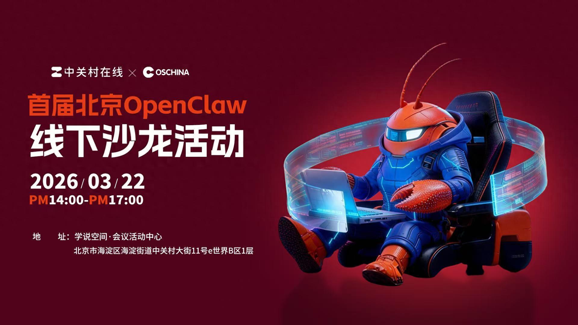 2026年3月22日,中關村在線將在中關村大街11號e世界B區1層舉辦OpenClaw線下沙龍活動。如果你也想嘗試養龍蝦,或者已經開始準備部署OpenClaw,卻苦於零基礎無從下手、踩遍環境配置的坑,或是想解鎖更多高階玩法、找到同頻的養蝦同好,這場專爲OpenClaw準備線下盛會,絕對不容錯過!