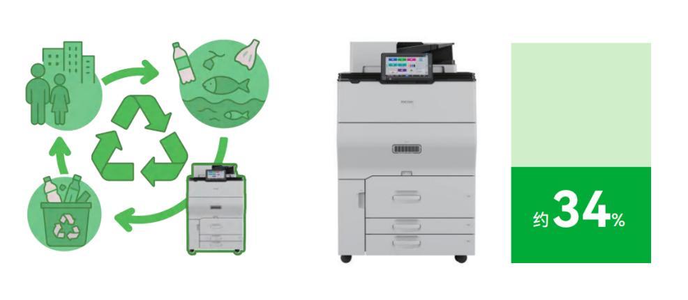 在ESG要求日益嚴格的背景下,理光IMC8010系列在產品全生命週期中融入循環經濟理念。新產品中再生塑料使用率約爲34%,機身鋼材中約32%採用由廢鐵電熔鍊制的電爐鋼板,促進再生資源有效利用,降低環境負荷。設備組裝工廠使用的全部電力均來自可再生能源發電,睡眠模式下功耗僅爲0.5W,在降低環境負荷的同時有助於削減電力成本。