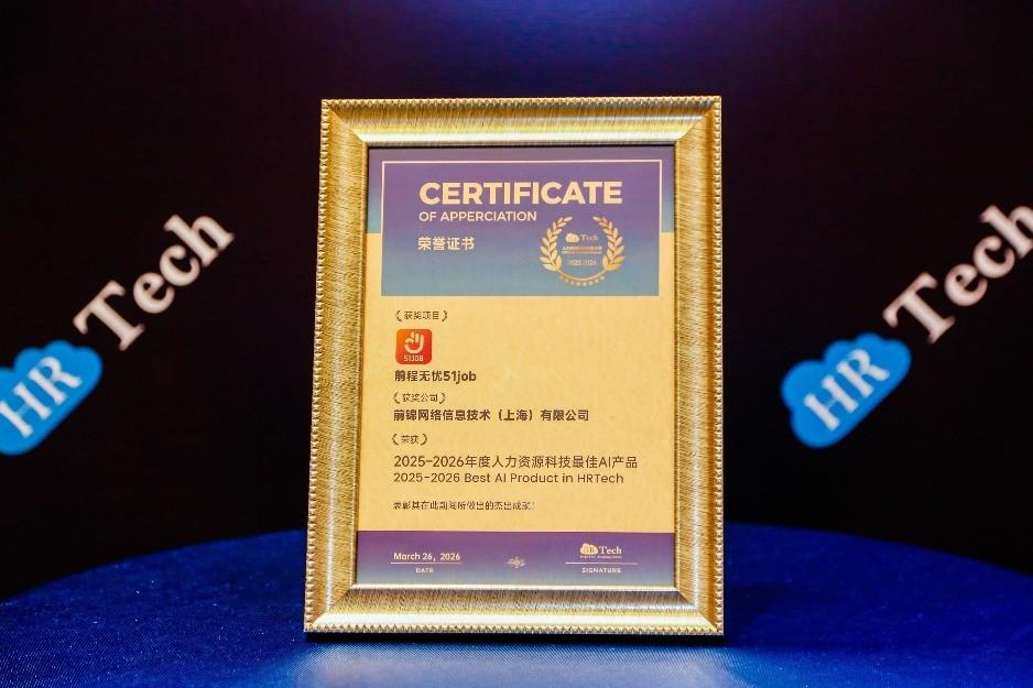 在人工智能技術重塑全球產業版圖的當下,人力資源服務行業正迎來前所未有的數智化變革。近日,國內領先的人力資源服務商前程無憂51job憑藉其在技術創新體系建設及AI產品實戰應用中的卓越表現,接連斬獲兩項重磅榮譽:正式通過上海市經信委等多部門聯合評審,獲得“上海市企業技術中心”認定;同時,其AI創新成果在2025-2026 HRTech年度大獎評選中脫穎而出,榮獲“年度人力資源科技最佳AI產品”獎項。