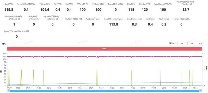 我們選擇熱門射擊遊戲《無畏契約:源能行動》進行測試,一局對戰下來平均幀率穩定在119.8FPS,遊戲體驗相當不錯。