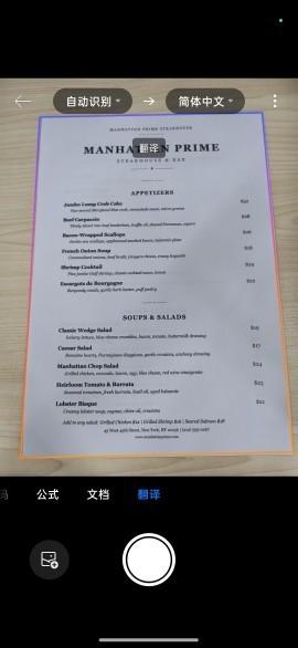 用戶經常看着滿是英文的菜單,感到十分迷茫。這時,用戶打開了小布掃一掃的翻譯功能,進入AI菜單翻譯界面,將鏡頭對準菜單。神奇的事情發生了,菜單上的英文瞬間被翻譯成了中文,並且排版整齊,與原菜單幾乎一模一樣。
