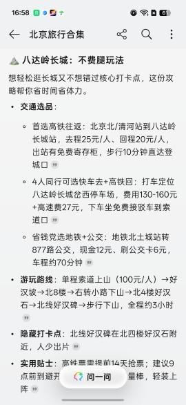 有了小布記憶-旅行合集功能後,一切都變得截然不同。用戶只需將收集到的旅行相關信息整合到一個合集中,小布記憶便能自動對這些內容進行分析和提煉。它會精準地識別出目的地精華、必打卡點、行程建議等關鍵信息,並以清晰的結構呈現出來。例如,它會將不同景點按照地理位置或遊玩順序進行排序,還會爲用戶推薦當地的特色美食和餐廳,並附上詳細的地址和營業時間。