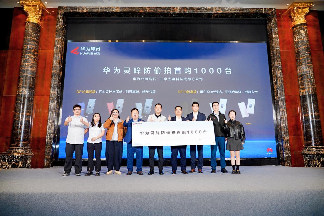 活動現場還舉行了靈眸防偷拍全國首購儀式,深圳市三卓光電科技有限公司作爲四川首家分銷鑽石夥伴,率先完成新品認購。華爲四川政企業務部副部長羅亮、華爲數據通信產品線園區網絡分銷PDT經理羅濤、華爲四川政企業務部數據通信部部長高嵩、華爲四川政企分銷銷售部部長牛四共同上臺見證,標誌着華爲靈眸防偷拍方案正式在四川落地,爲酒店、民宿等場景提供專業隱私安全保障。