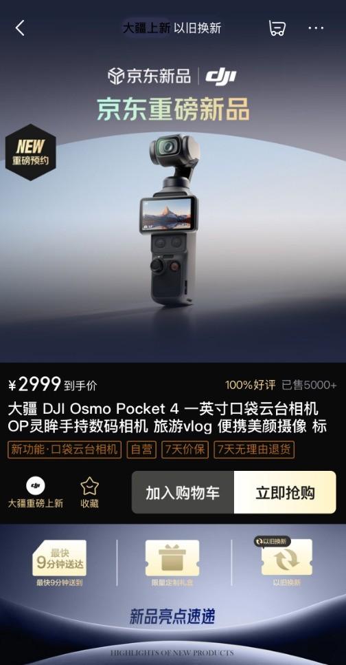 大疆Osmo Pocket 4京東開售:先人一步入手 疊加以舊換新立省400元