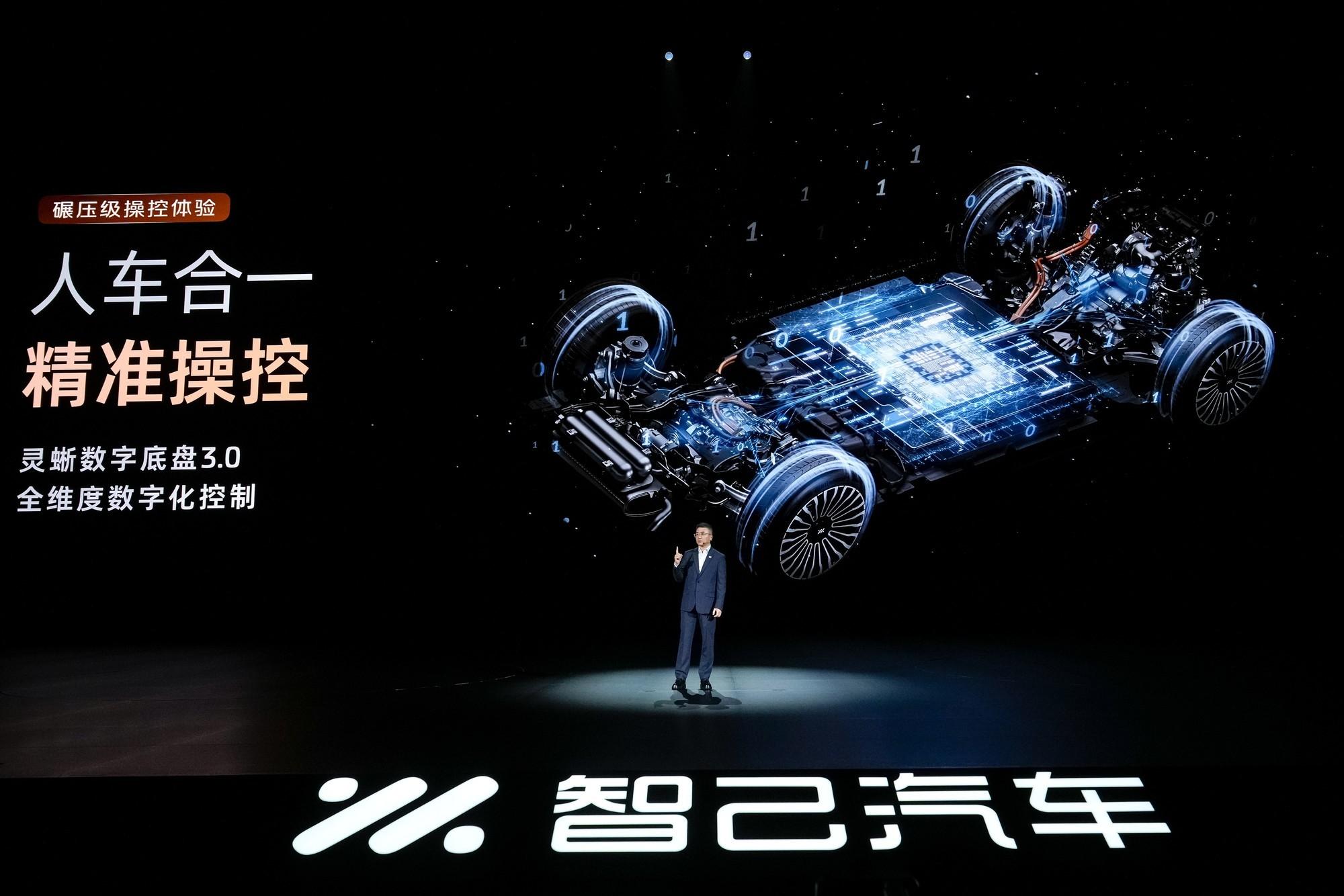 底盤方面,智己 LS8 全系標配靈蜥數字底盤 3.0,採用前雙叉臂獨立懸架 + 後多連桿獨立懸架的組合,搭配 CDC 連續可變阻尼減震器、120mm 行程閉式空氣懸架以及 MK C2 線控制動系統。