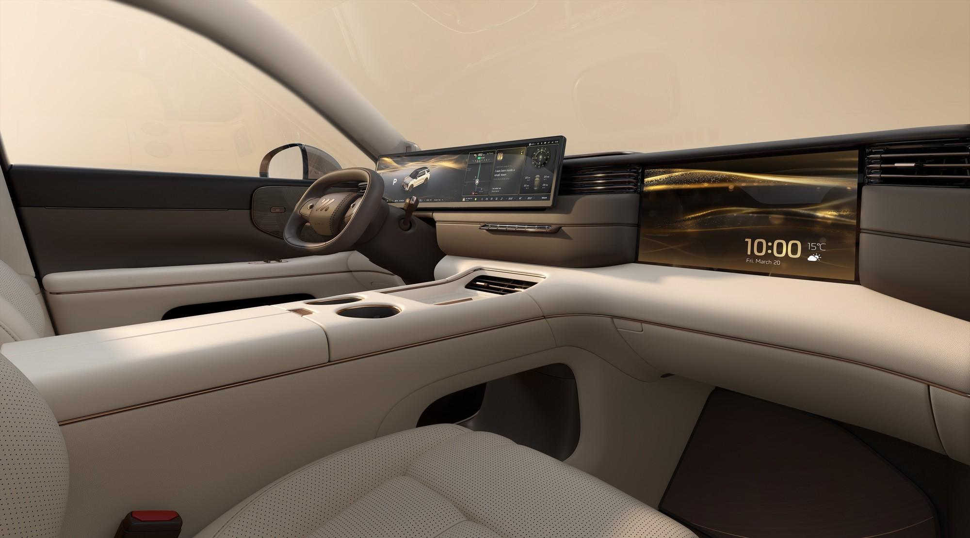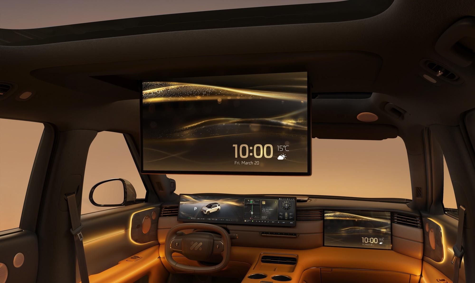 座艙內配備 27.1 英寸 5K MiniLED 中控屏、15.6 英寸 3K 副駕娛樂屏、21.5 英寸二排 4K 吸頂屏的多屏交互組合,搭配 25 揚聲器 7.1.4 聲道佈局的 B&O 音響系統。車機搭載高通 8295P 芯片,內置 IM Ultra Agent 1.0 智能交互系統,融入阿里千問大模型,大幅提升了車機交互的流暢度、自然度與功能性。