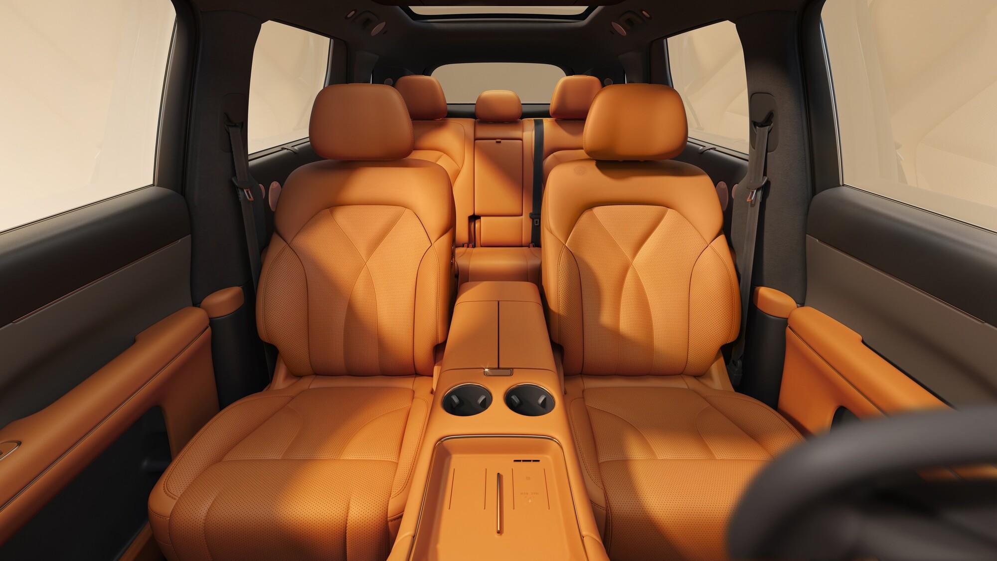 座椅佈局提供大五座與六座兩種版本,適配不同家庭的出行需求。新車配備 “AI 舒享全家桶” 配置,全車座椅採用 Nappa 真皮包裹,主副駕均配備零重力功能與 4D 機械按摩功能,後排座椅支持加熱、通風、按摩,二排獨立航空座椅還配備電動調節、腿託等功能。