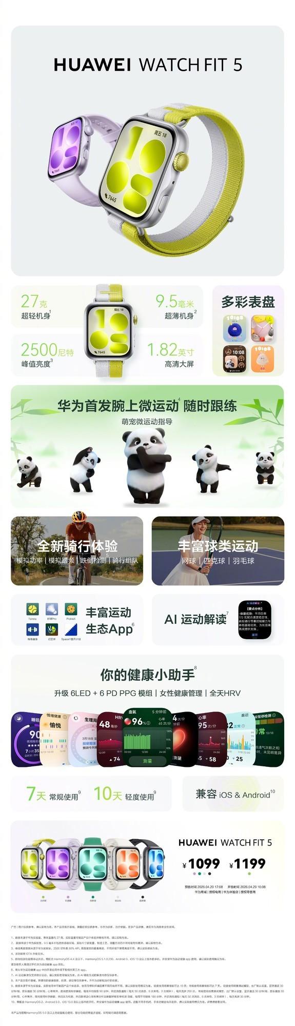 核心功能上,業界首發腕上微運動,內置 30 組輕量訓練動作,搭配萌趣熊貓陪練,30 秒即可完成一次跟練,輕鬆緩解久坐疲勞。運動體驗全面升級,支持 100 餘種運動模式,涵蓋模擬功率騎行、網球、羽毛球等場景,配合 AI 運動解讀與豐富運動生態 App,滿足全場景運動需求。