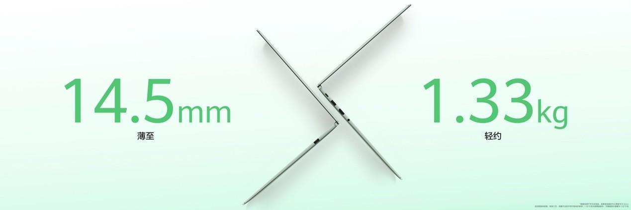 機身薄至14.5mm[1],重量約1.33kg。這一輕薄設計,讓移動辦公與學習變得更加輕鬆。無論是穿梭于都市通勤,還是往返於差旅途中的會議室與咖啡廳,用戶都能將其從容攜行,真正實現了高效“隨行無負擔”。