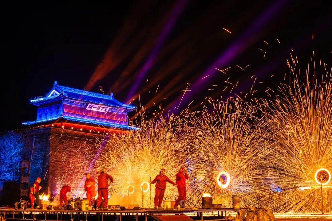 秦皇島山海關2024年年博會廟會打鐵花