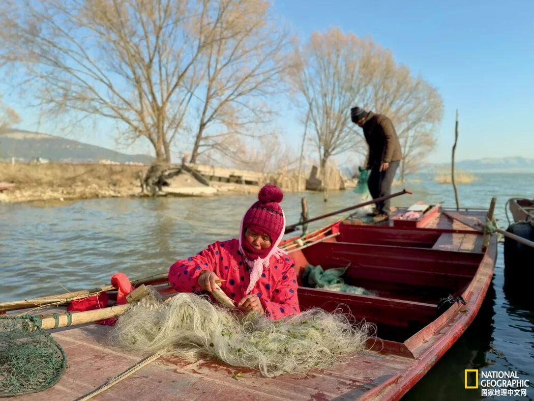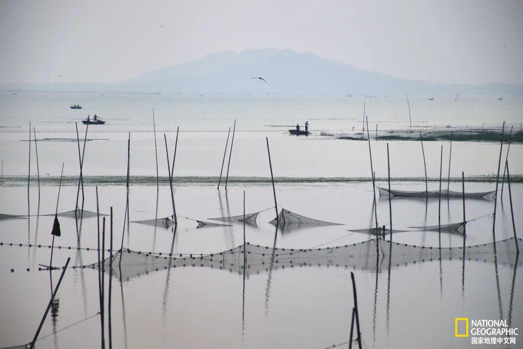 東平湖西岸附近早起打魚的漁民正將捕獲的魚從漁網中摘下來。東平湖水產資源豐富,孕育着鰱魚、鱅魚等四十多種經濟魚類,以及菱角、芡實等十幾種水生植物,是我國長江以北地區難得一見的水產“聚寶盆”。|李繼保