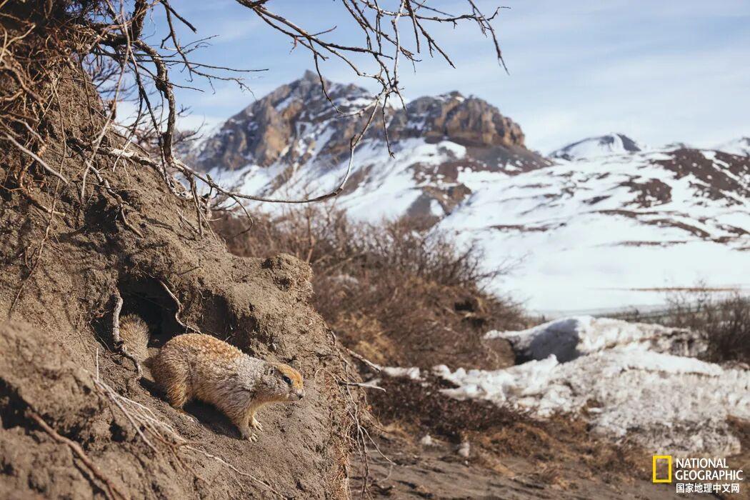 一隻北極地松鼠在阿拉斯加布魯克斯山脈山麓的洞穴中醒來,結束了長達8個月的冬眠。每年秋季,科羅拉多州立大學的科學家們都會在附近的圖利克野外考察站給松鼠佩戴項圈,通過追蹤體溫和光照數據來判斷松鼠是否在洞穴內。到了春天,醒來的松鼠會被戴上耳標並稱重,之後它們便開始夏季的覓食活動。|科裏·阿諾德