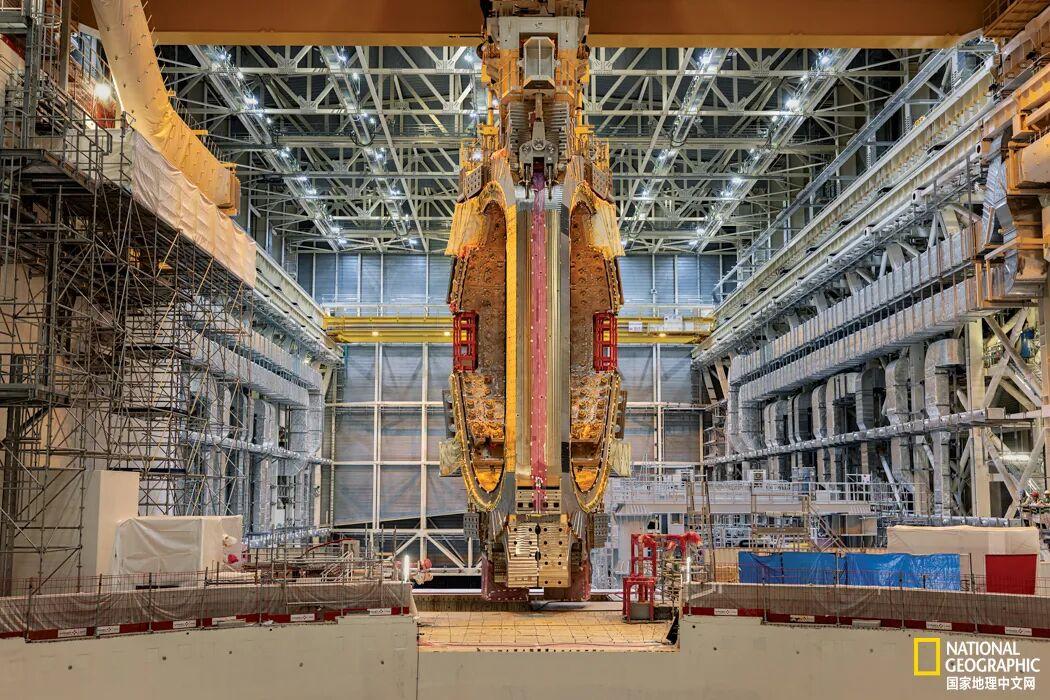 今年4月,在經歷了多年的延誤和挫折後,ITER終於迎來里程碑時刻。工作人員將託卡馬克裝置必需的九個巨型真空室模塊中的第一個部件成功吊裝就位。這些模塊相互嵌合,每個重約1350噸,都需要一套特製工具方能正確精準對位。|保羅·韋爾佐內