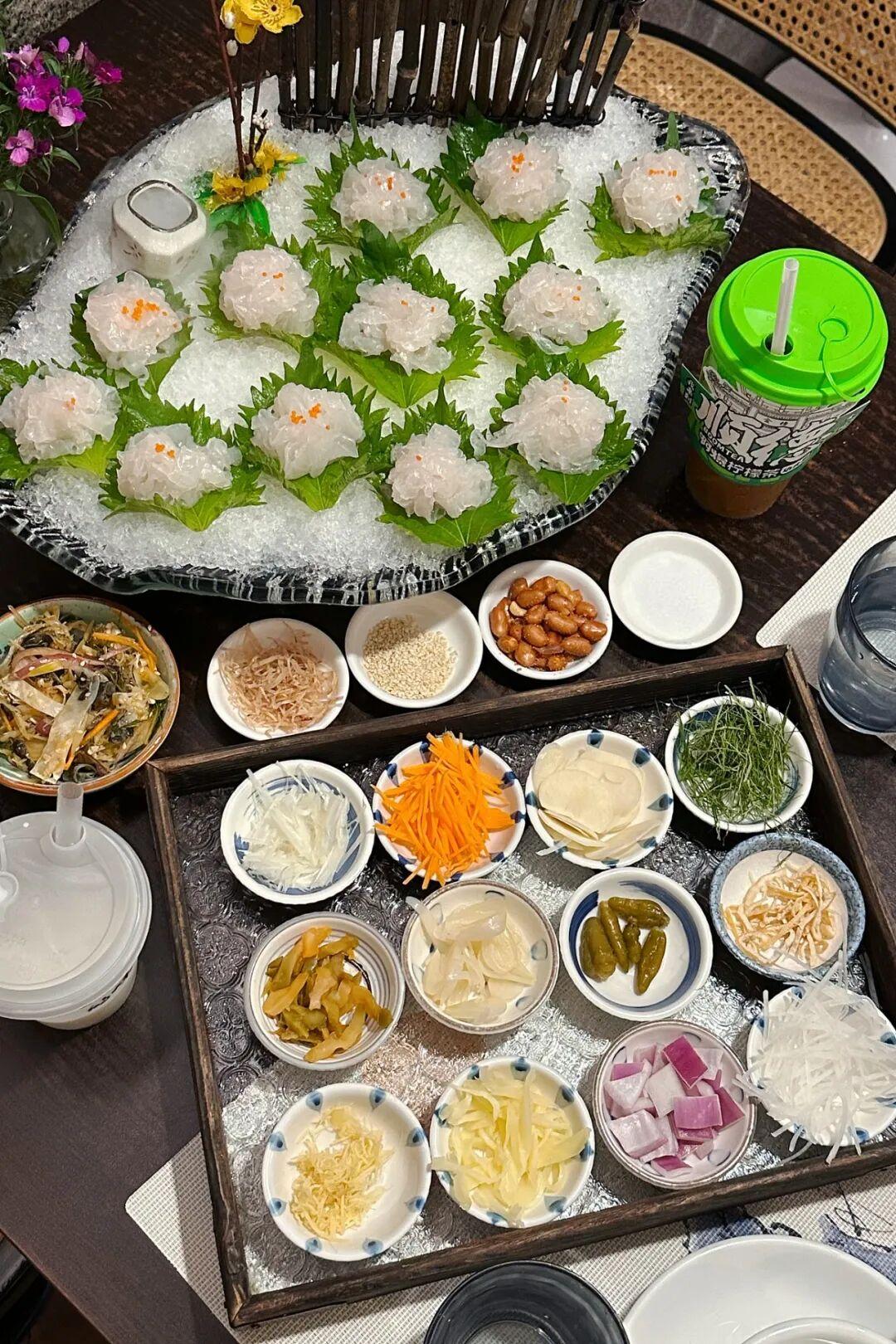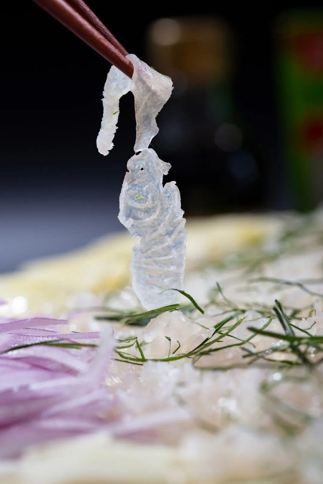 一尾活魚,瞬間起肉,魚片薄得幾乎透光。最傳統的喫法只用鹽和油,讓魚肉本身的清甜成爲主角。上桌前還有個儀式——“撈起”,寓意風生水起、萬事興旺。