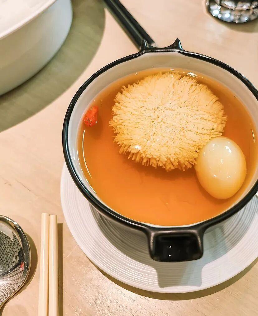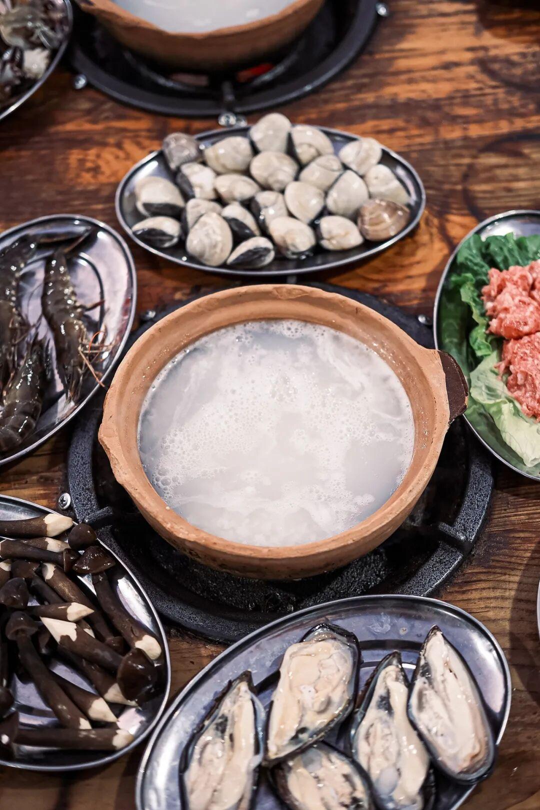 他們甚至把粥變成一種“火鍋理想”——用“米湯”涮食材。將香米煮至融化,米粒消失,粥水爲湯底,雞湯加持,蔬菜或海鮮等食材在其中涮過,都帶着米漿的細膩質感。等盤中食材一掃而空,再把剩下的湯慢慢收濃,盛在小碗裏喝下,那叫一個美味。