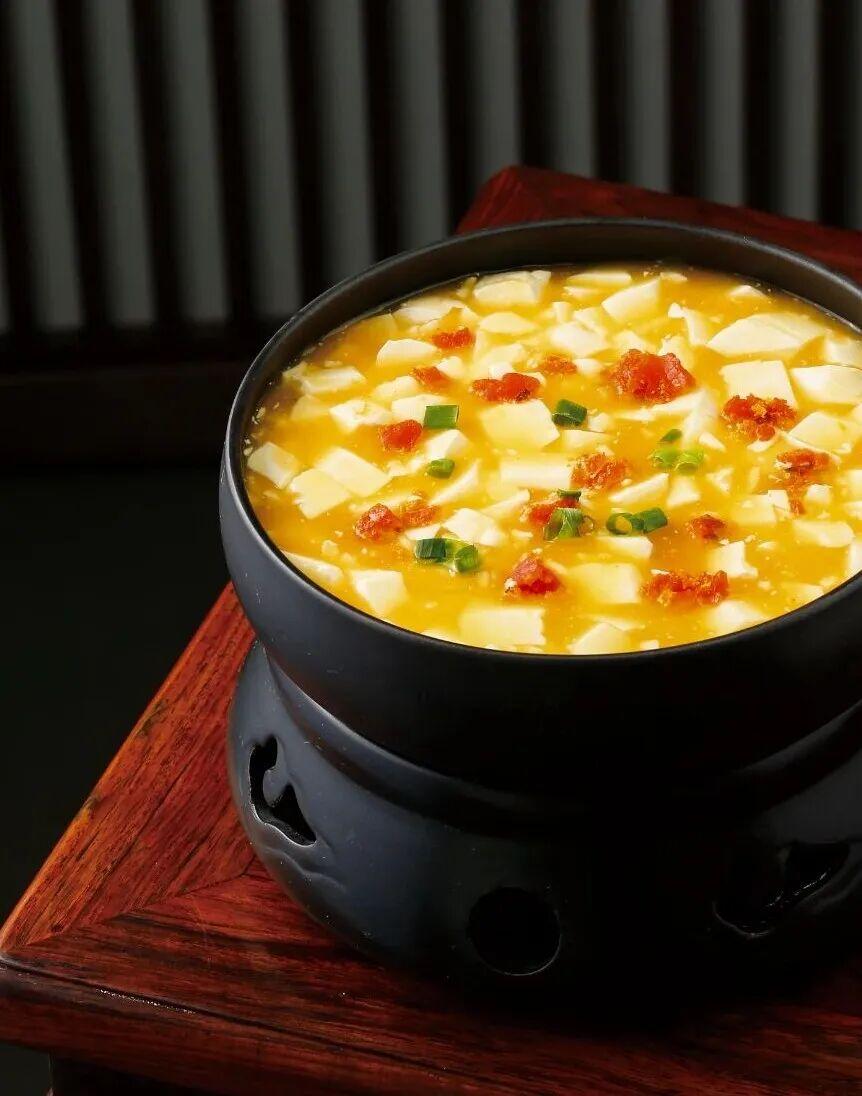 除了刀功講究,淮揚菜的烹飪方法可以說是真正做到了“食不厭精,膾不厭細”。平橋豆腐看似平淡無奇,實則“金玉其中”:豆腐被切成一致的菱形薄塊,配以鯽魚腦、河蝦仁,用老母雞高湯燴制,起鍋前淋明油,撒一撮芫荽末。掀開蓋子,湯清如玉,香氣馥郁而不張揚。