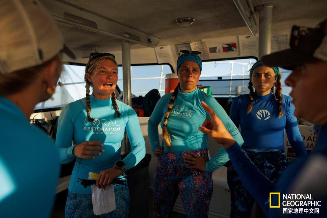 在佛羅里達羣島的伊斯莫拉達鎮,研究人員正取回一些珊瑚幼體,這些幼體隨後將被轉移到陸地上的水族箱中妥善養護。|國家地理圖片集