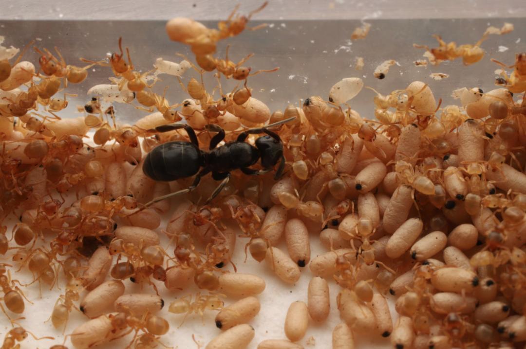 大約10天后,入侵蟻后開始產卵,三個月後,首批300枚蟻卵成功孵化。起初,東方草蟻和黃墩蟻還能在蟻羣中共存,但一年左右後,整個蟻羣中約3000只工蟻,已經全部變成了入侵蟻后所產的東方毛蟻。