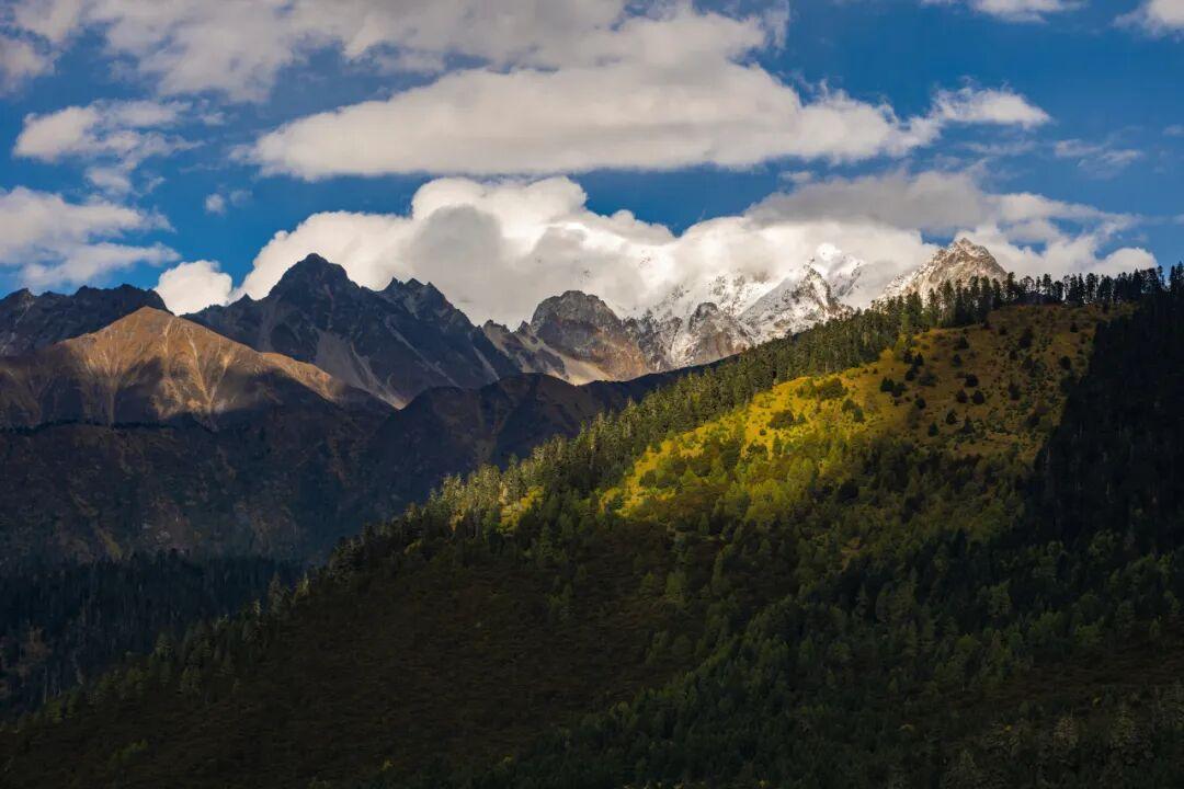 來自印度洋的暖溼氣流,得以沿此通道長驅直入,使這片海拔落差極大的土地,成爲了青藏高原上的一座“溼島”。這裏年降水量充沛,雲霧繚繞,從而孕育出了舉世罕見、從河谷熱帶季風雨林到高山寒溫帶針葉林的完整森林垂直譜系。