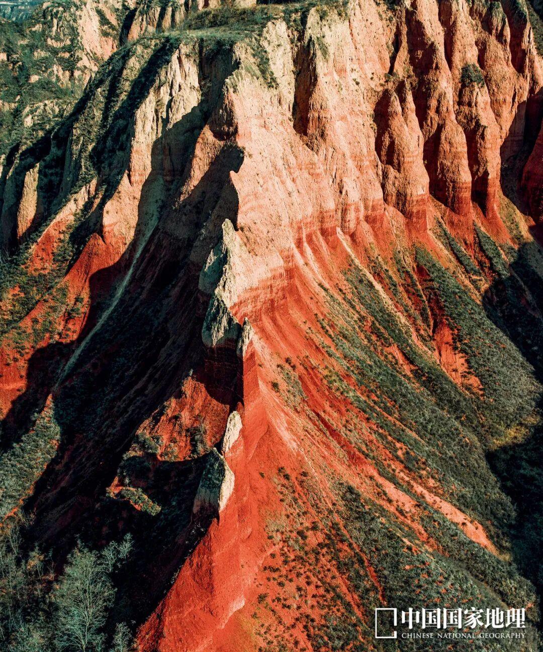 川塬之間,梁峁連亙、溝整縱橫、紅崖壁立。