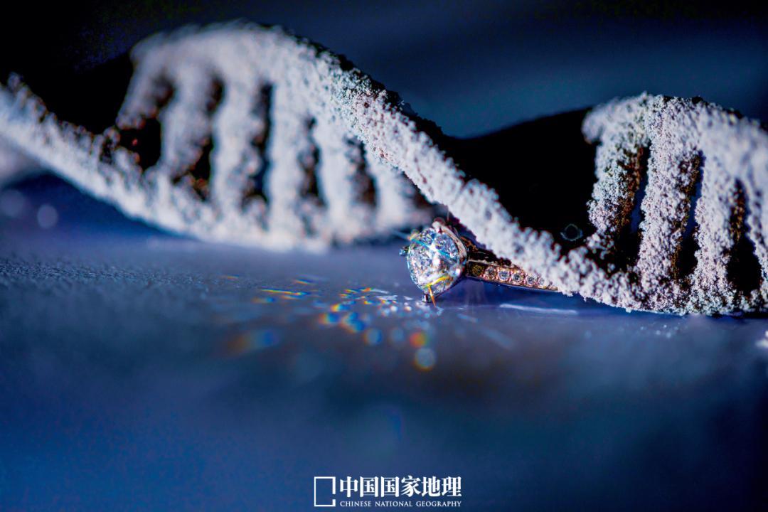 圖是象徵生命本源的DNA雙螺旋碳粉模型