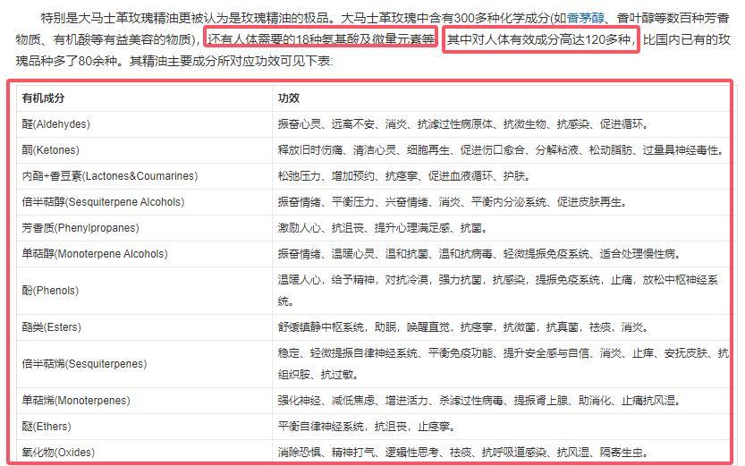 大馬士革玫瑰除了含有300多種成分,還有18種氨基酸及微量元素等。