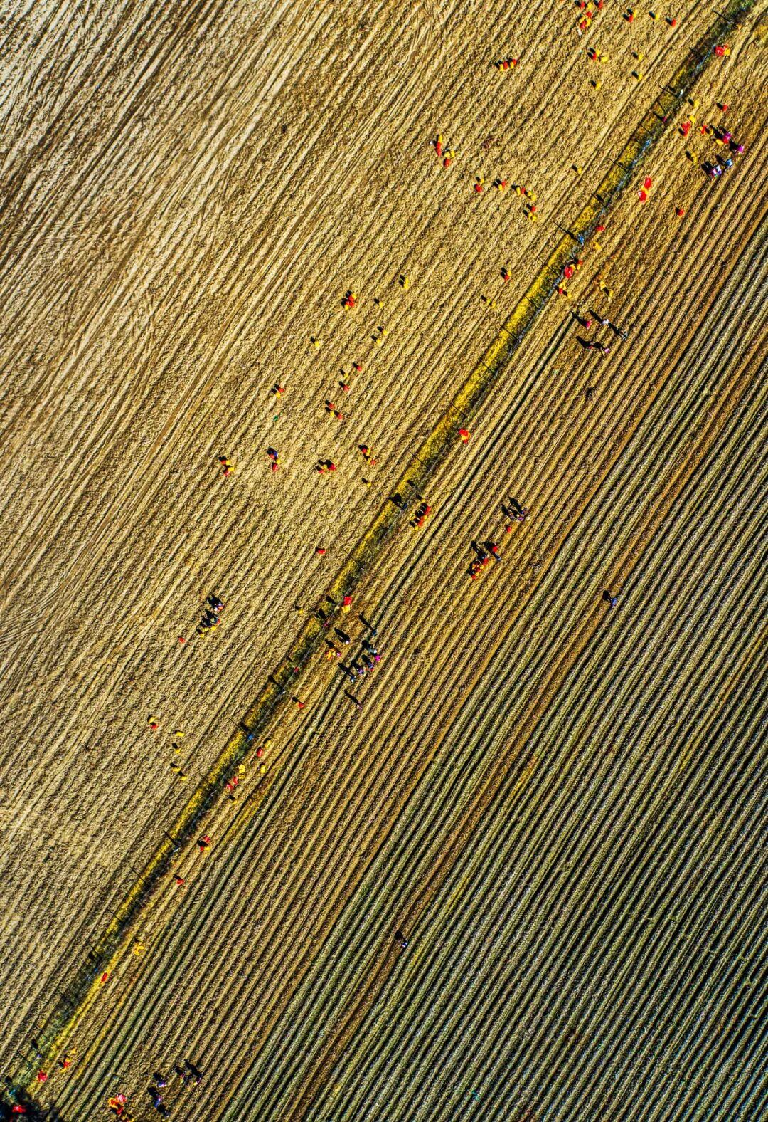 四川甘孜州道孚縣八美鎮,航拍收穫土豆的豐收場景。