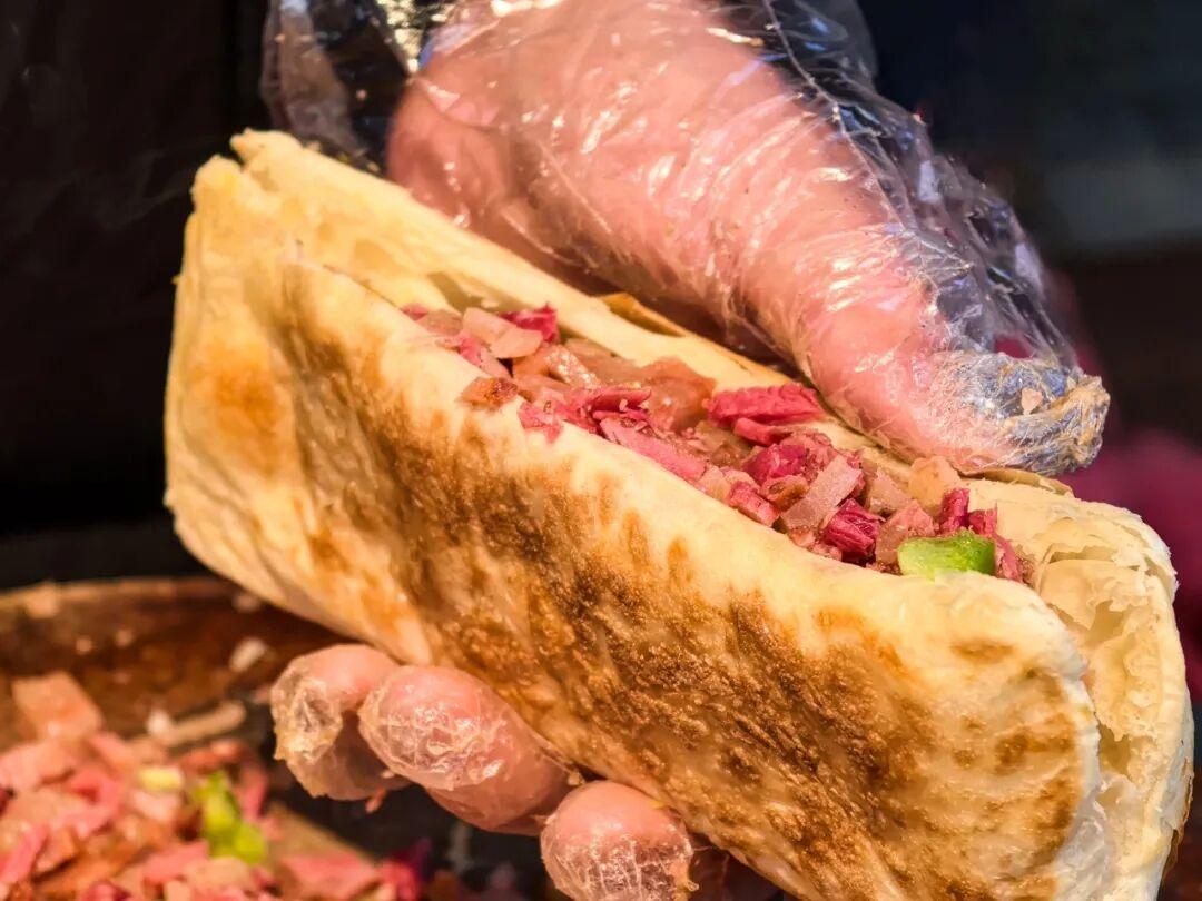 而餅,由於便於運輸攜帶,大概是麪食家族中“走得最遠”的一位。新疆的饢不易變質、量大管飽,山東的煎餅薄脆清香,河南的雞蛋灌餅外酥裏嫩,河北的驢肉火燒鮮美多汁......
