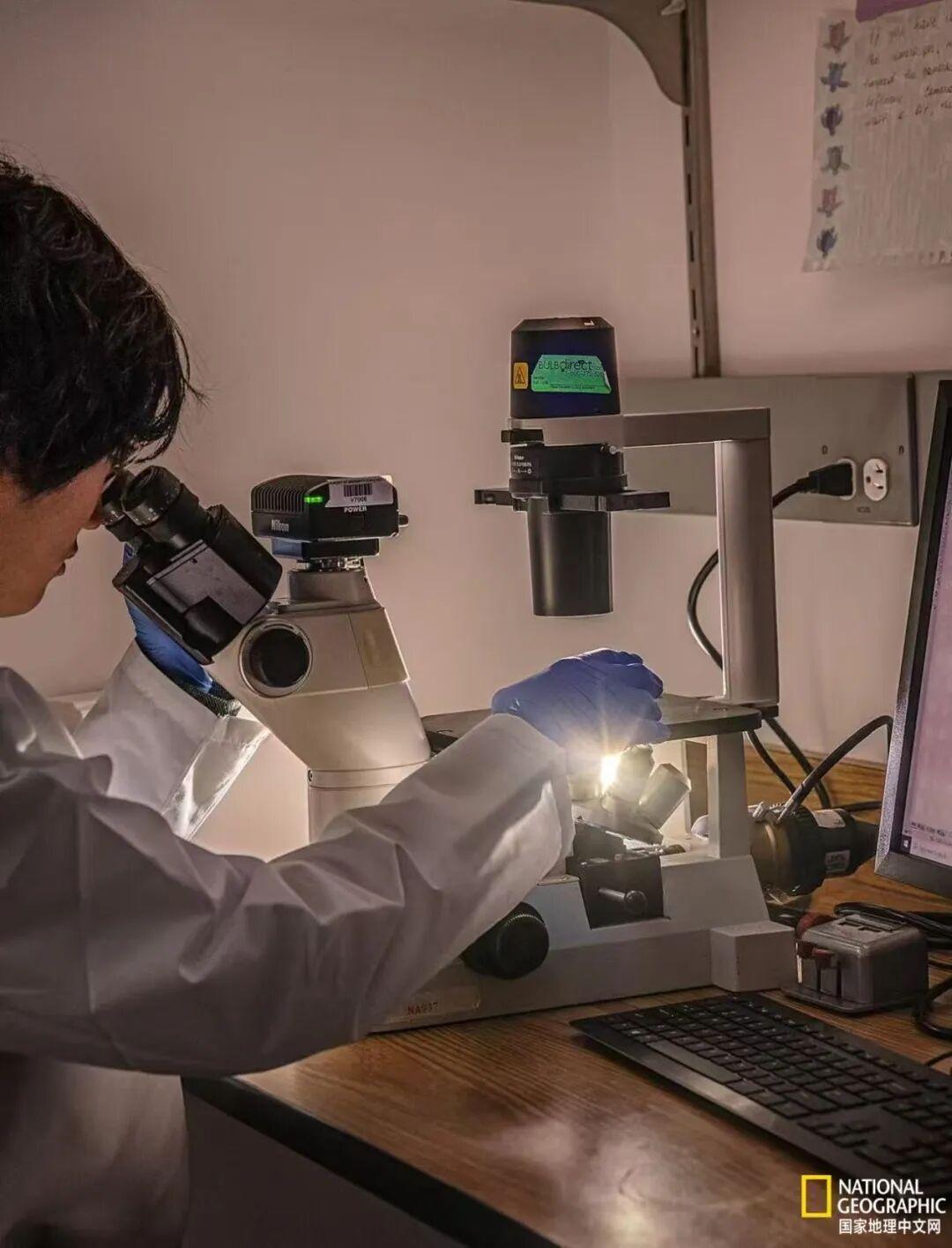 研究生金世鍾(Seijoong Kim)正在檢測裸鼴鼠皮膚細胞的健康狀況。