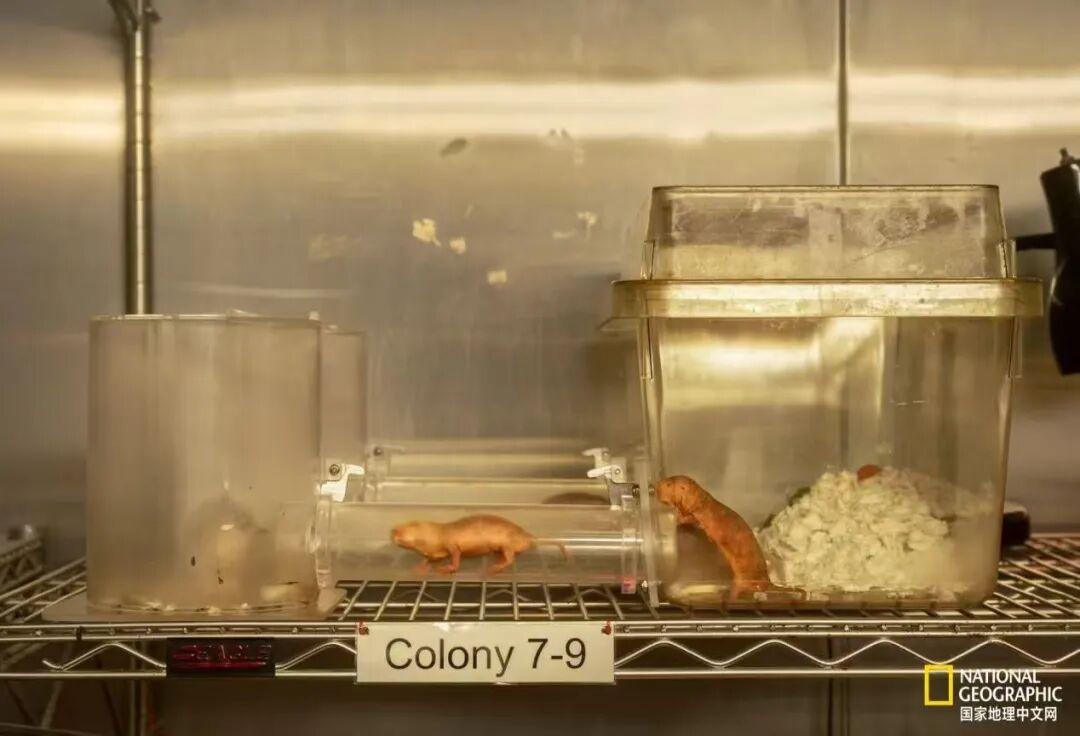羅切斯特大學實驗室裏飼養着30個裸鼴鼠種羣,它們生活在模擬地下自然巢穴的艙室與通道中。