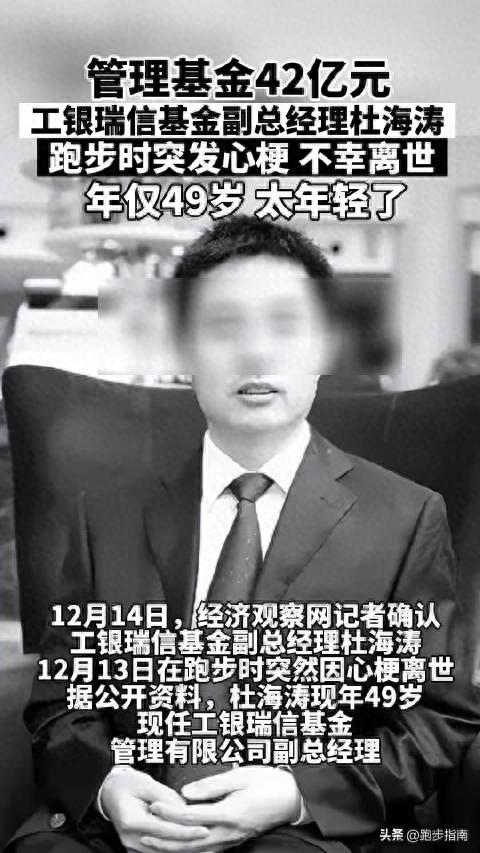近期不幸的消息傳來,工商銀行工銀瑞信副總經理杜海濤在跑步過程中突然心臟病發,年僅49歲的他因此離世。