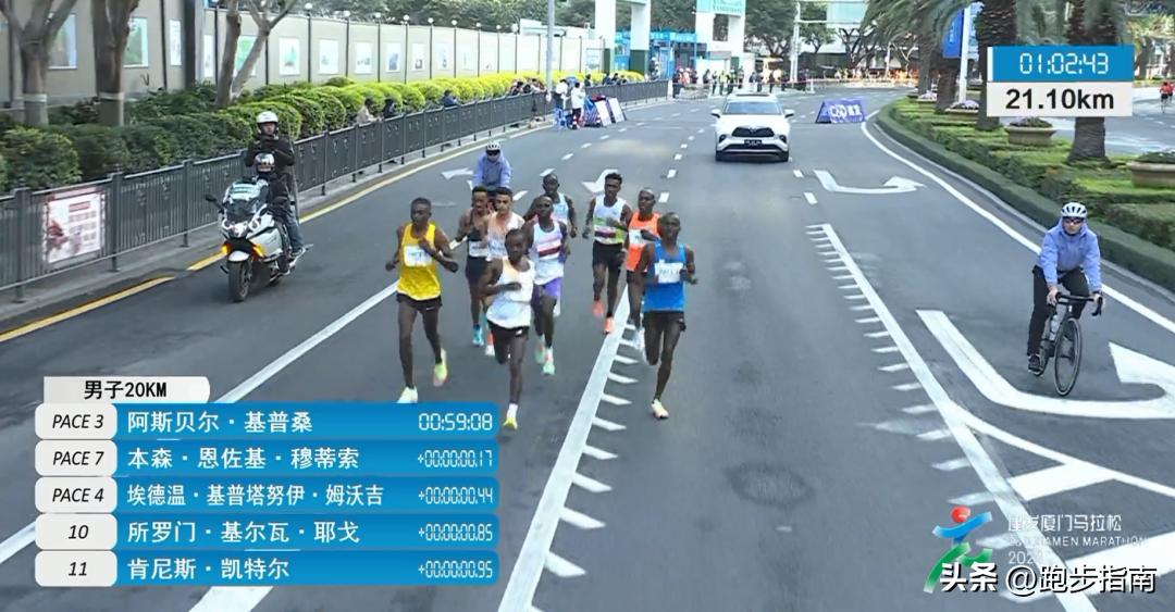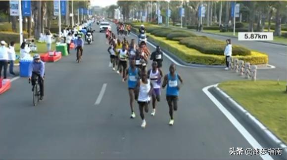 在廈馬比賽的第一個5公里處,領先的集團主要由非洲選手構成,顯示了這屆比賽的高水平。中國選手緊隨其後,表現出色。