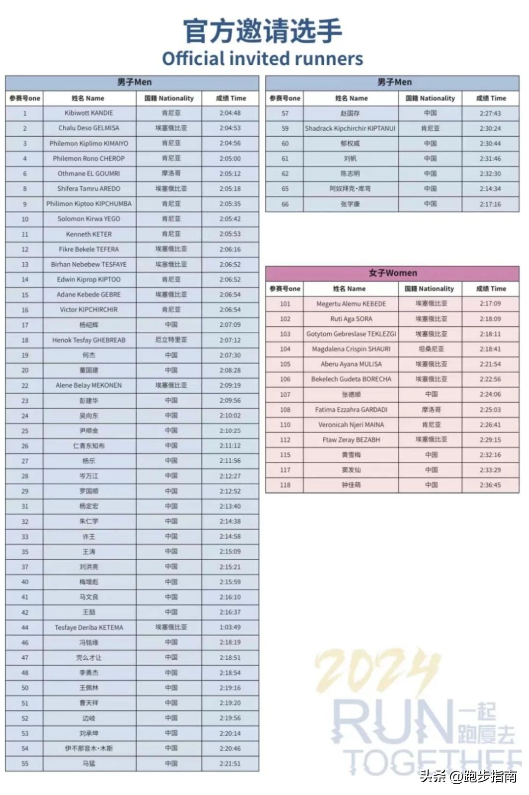 外籍選手中,肯尼亞半馬國家紀錄保持者基比沃特-坎迪領銜,此外還有我們熟知的阿雷多、基普楚巴和耶戈等大咖。