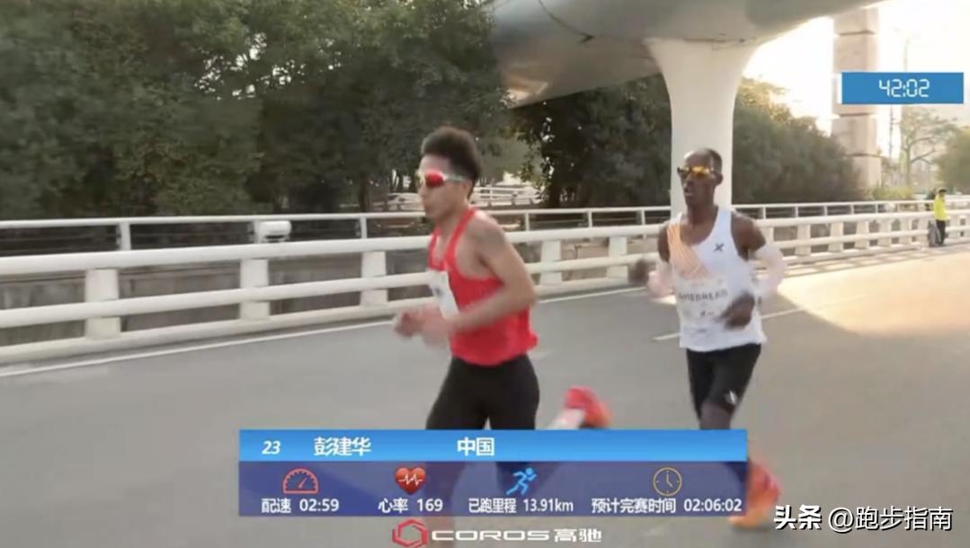 前15公里賽段,在國內選手中,彭建華始終保持了每公里大約3分鐘的配速。