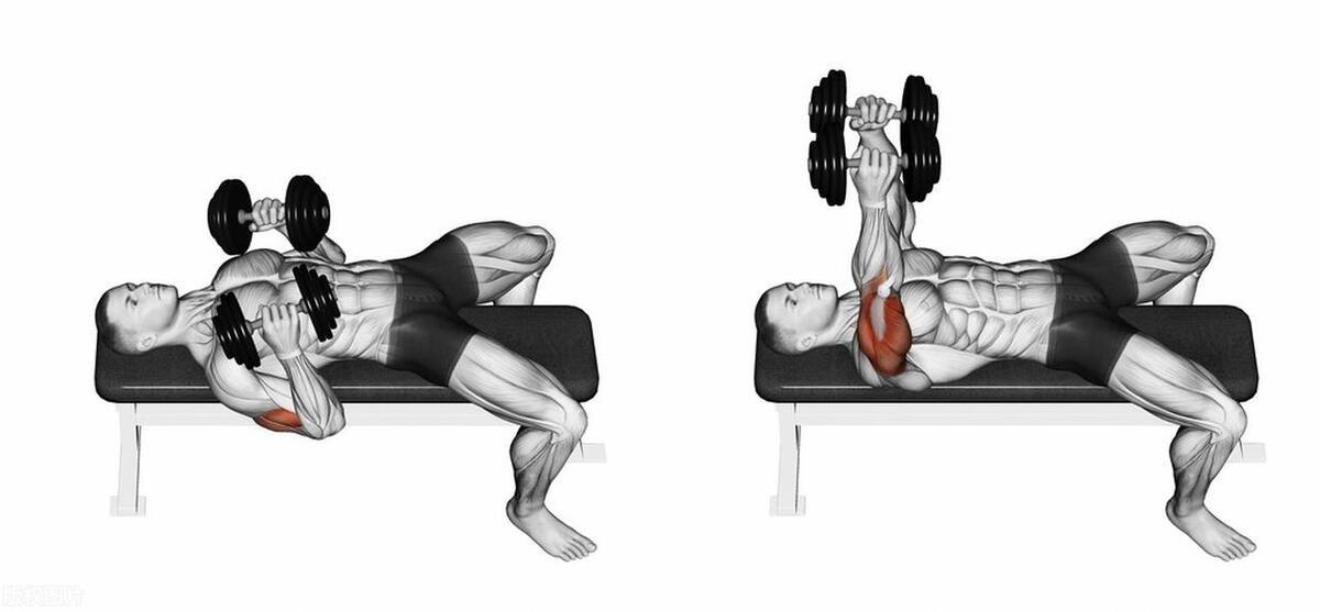 在執行臥推動作時,需要保持身體姿勢正確,起始姿勢爲躺在平凳上,雙手握住槓鈴,手臂伸直。