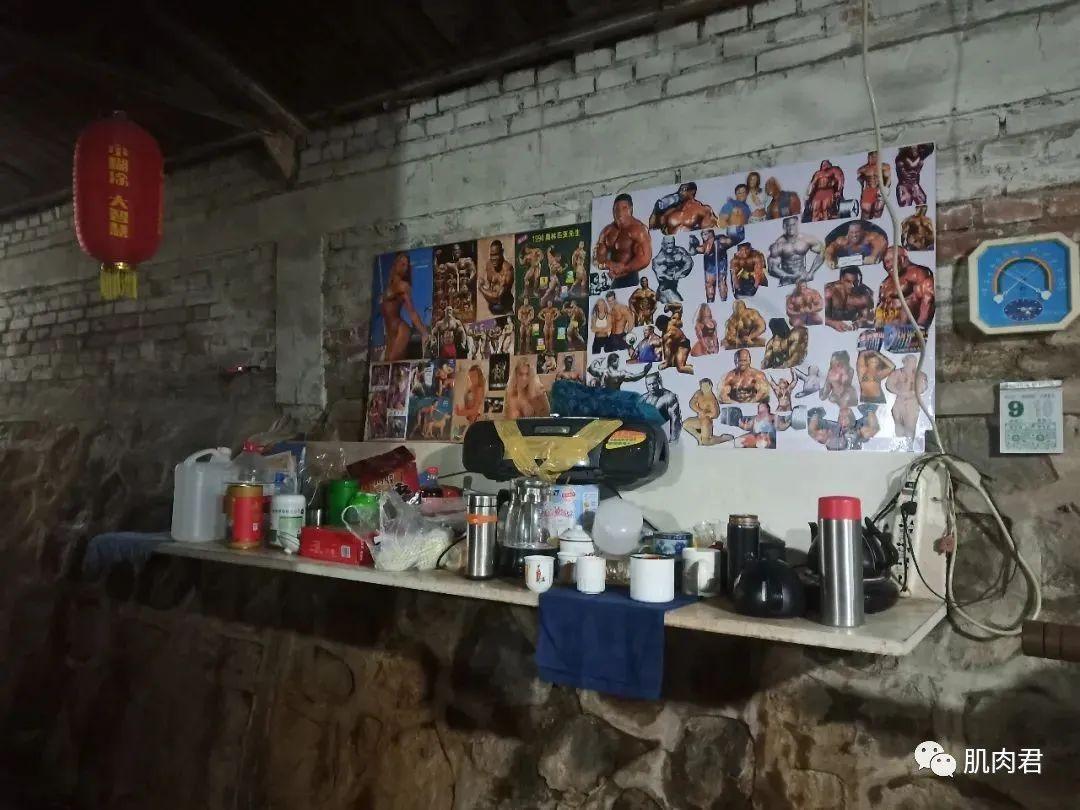 這個健身房非常簡陋,有年代感,沒有粉飾裝潢,只有紅磚結構,牆面貼滿了上世紀的健美海報和雜誌。