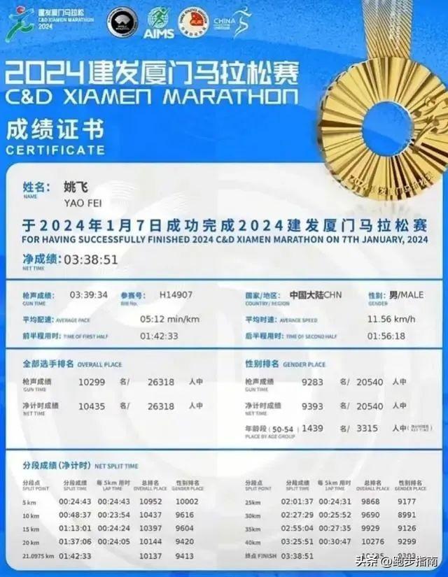 近日,在廈門馬拉松賽事中,福建省泉州市副市長姚飛以3小時38分的淨成績完賽,這一成績引起了網友的熱議。