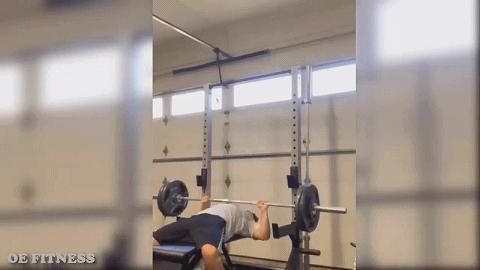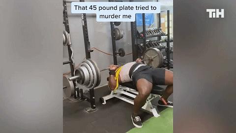 極限臥推沒有保護措施?順利逃杆,但最後1片隨機掉落是點睛之筆。