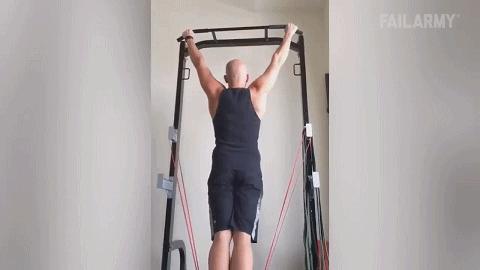 家用掛式引體杆,沒幾個踏實的。建議換成地面豎式引體架。