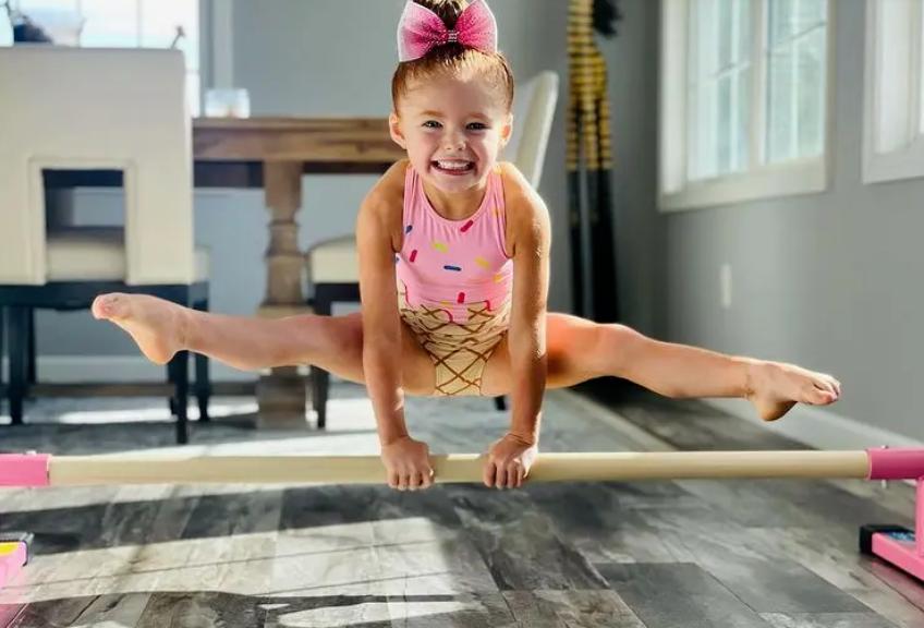Kynlee的母親也是從事體育工作的,當拉拉隊長,所以非常鼓勵小孩往體操方面發展。
