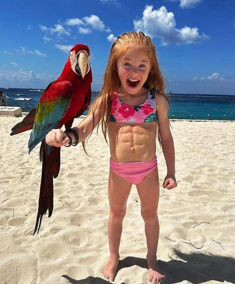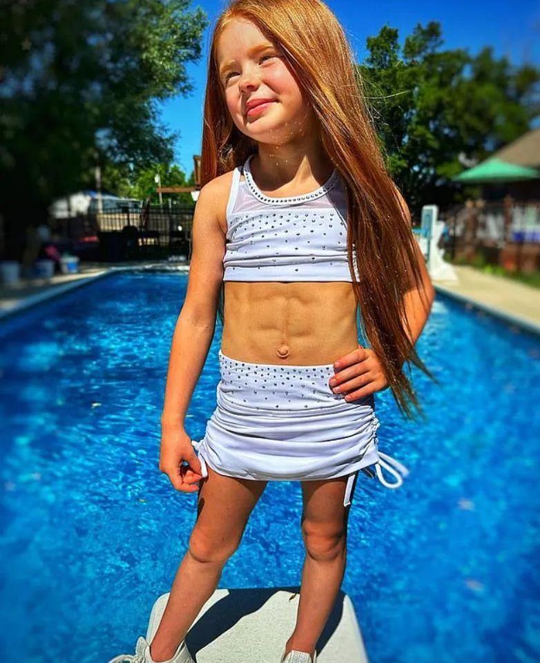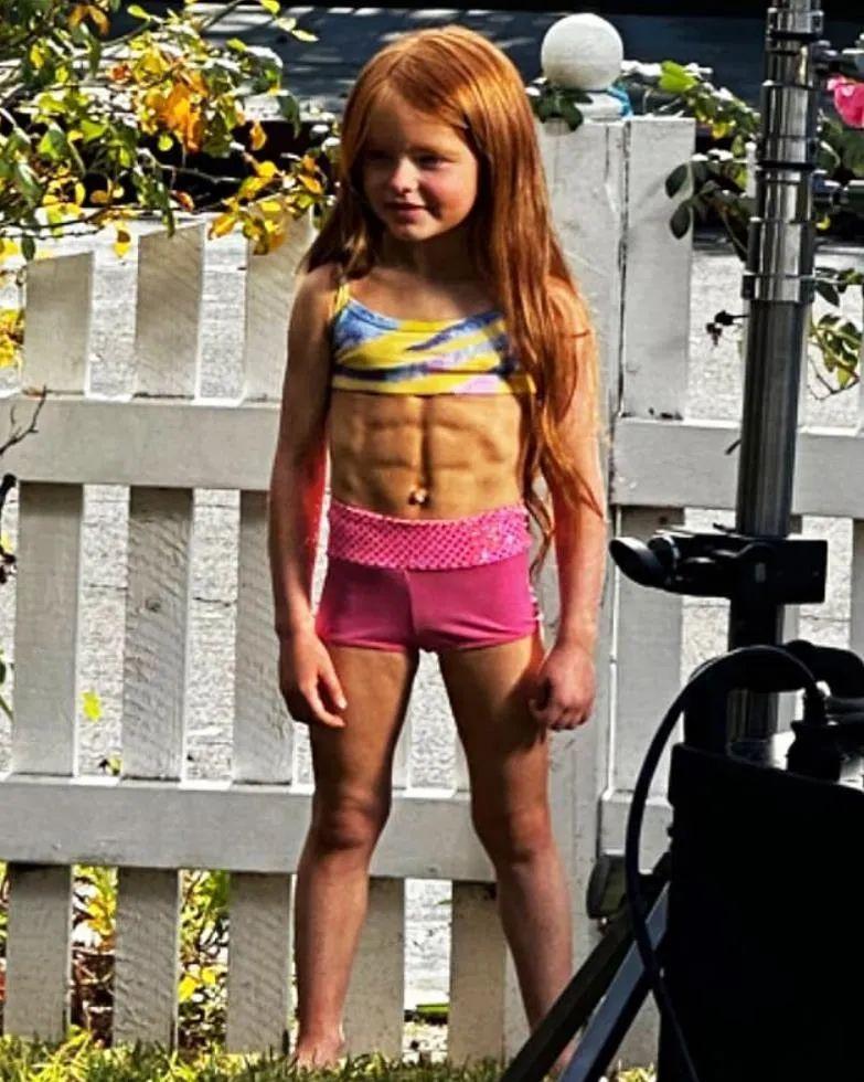 她5歲沉迷擼鐵,7歲秀出六塊腹肌,網友都看傻了....