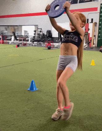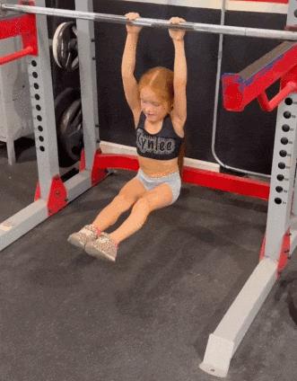 Kynlee的運動天賦很好,很多動作快速掌握了訣竅,而且也沒有輕言放棄,是小女漢子。而家人也一直鼓勵她健身,而Kynlee也慢慢愛上了健身,還慢慢開始了高難度動作。