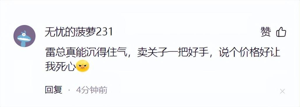 有網友看完這篇文章也留言說:雷總真能沉得住氣,賣關子一把好手,說個價格好讓我死心。