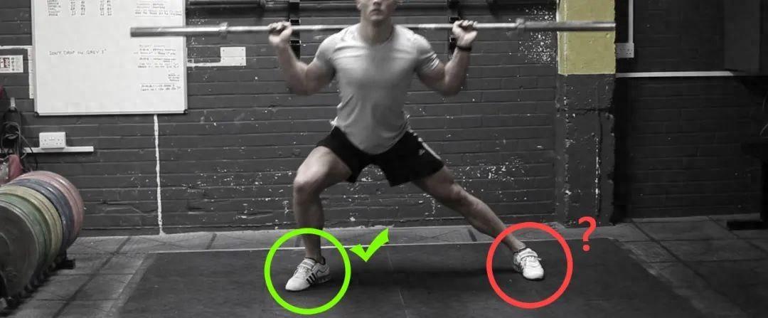 ●上半身直立,向前看不要向下,確保脊柱反弓,屁股略微撅起。先向你的一側移動重心並蹲下。然後將自己推回中間,再移向另一側。你的移動軌跡類似三角形,一定要先回中間再換另一側,否則相關肌肉沒有正確收縮。