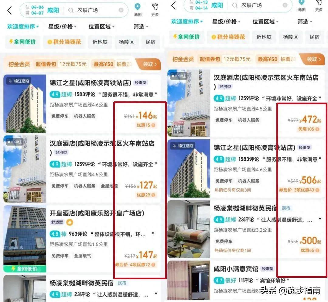 (網傳楊凌馬拉松比賽期間酒店價格對比)