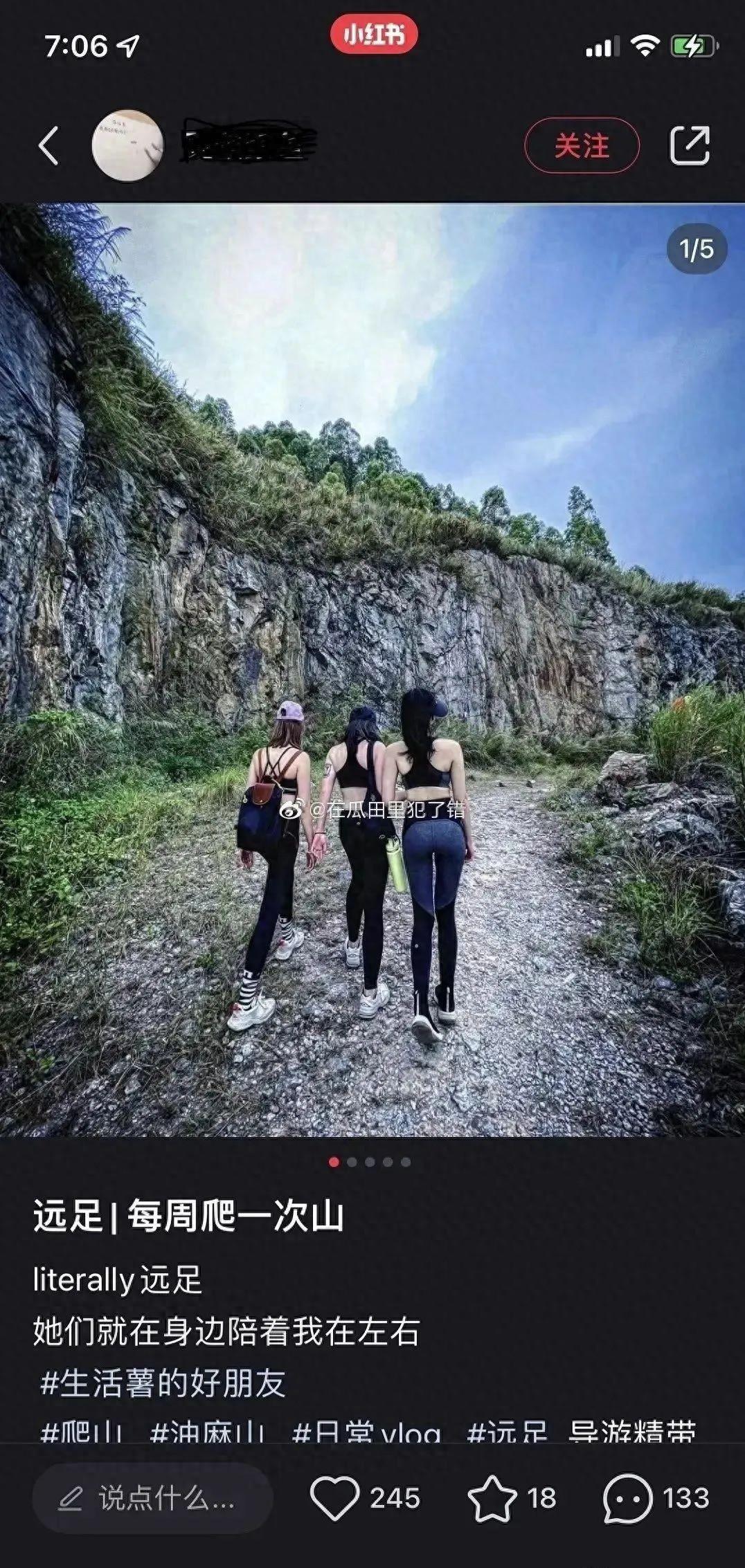 事情是這樣的,小紅薯上發佈了一則記錄,有3位小姐姐去爬山。